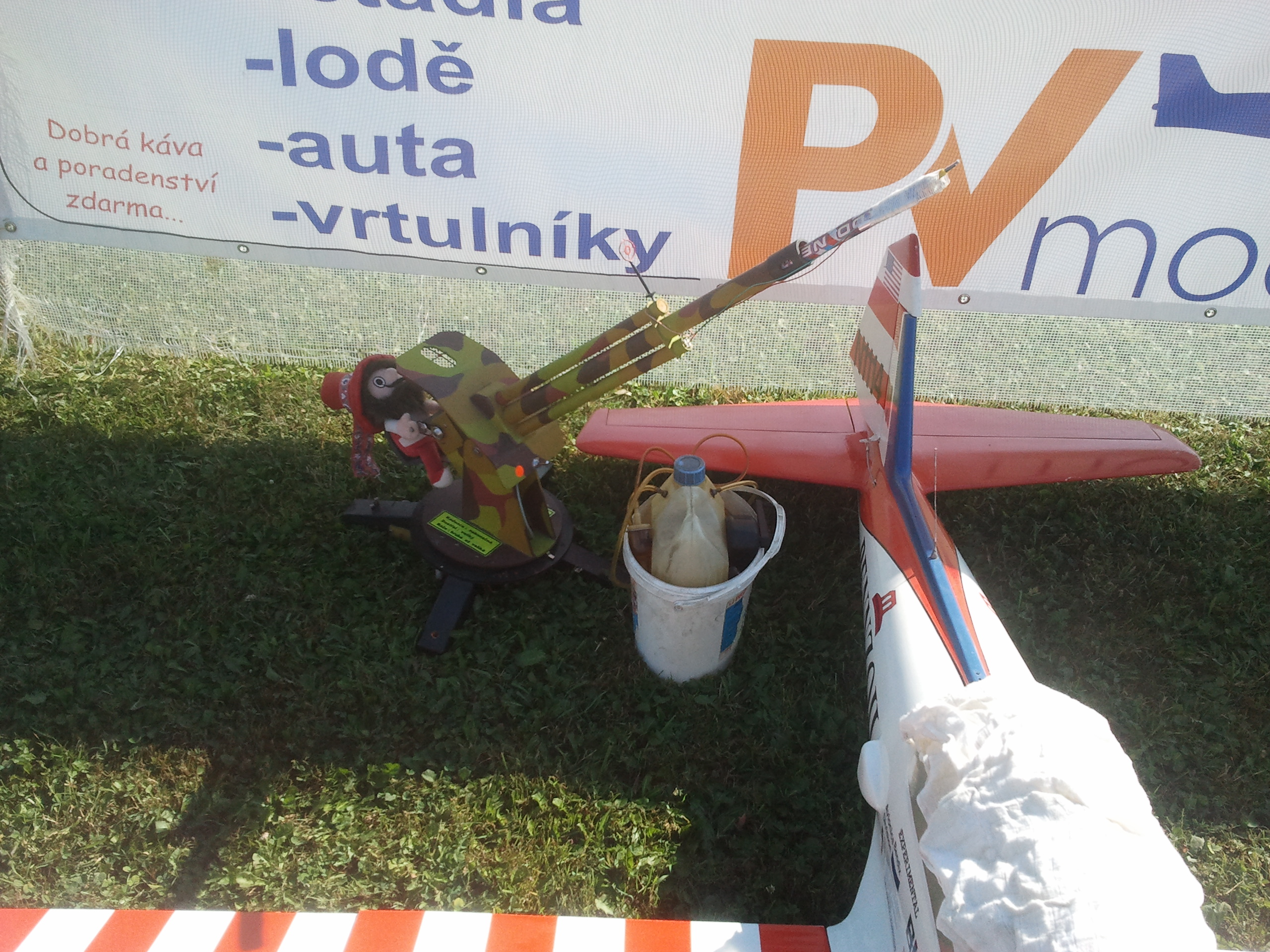 Na letisko sme pricestovali pred desiatou. Oto nás privítal Fernetom, už sa lietalo, guláš sa varil. Po privítaní sa sme zostavili svoje modely a pripravili sa na štart. Počasie celej sobote prialo. Vial mierny vetrík, slniečko svietilo. Proste bolo fajn.