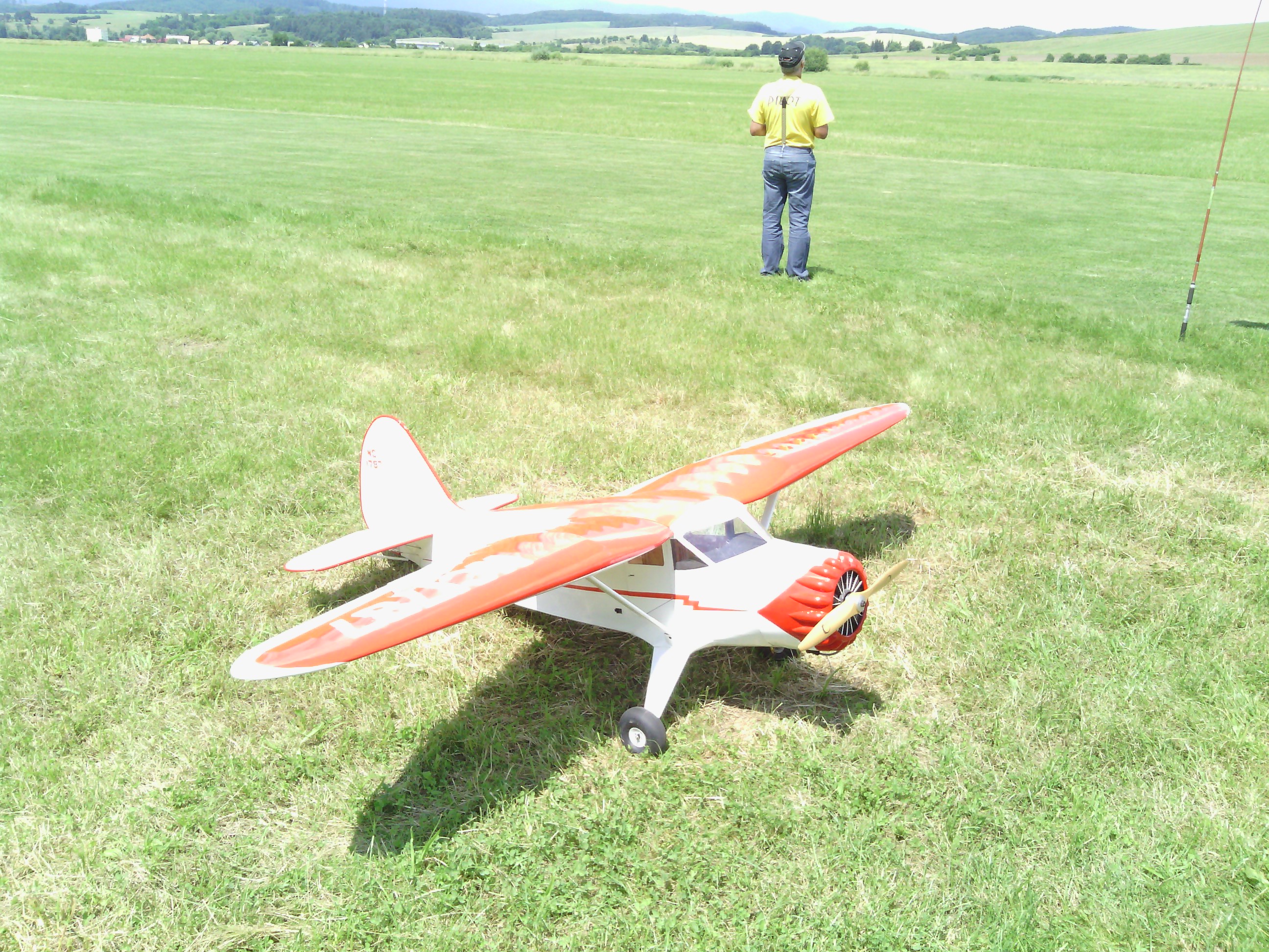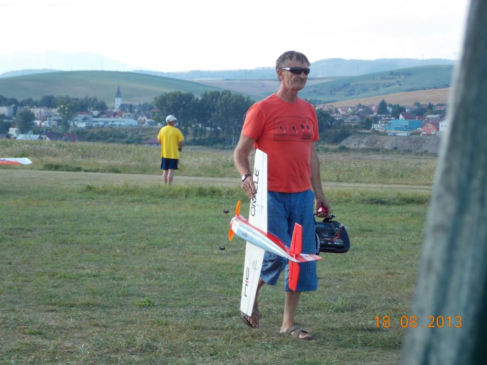 Na pozvanie kamarátov zo Spiša sme sa v nedeľu ráno vypravili (Marek a ja) spolu s Milanom Ondrejkom na letisko do Spišskej Novej Vsi. Počasie opäť prialo, nebo bolo bez oblačné a už ráno bolo teplo, ktoré sa v priebehu dňa ešte stupňovalo. Vďaka diaľnici nám cesta trvala necelú hodinu a už okolo osmej sme boli na letisku. Boli sme jediný cudzinci z ďaleka. Po rozložení prístrešku a ostatných vecí sme poskladali modely. Medzi tím sa schádzali domáci a okolo deviatej nás už bolo skoro dvadsať. Lietalo sa stále celý deň s krátkou prestávkou cez obed, kedy sme museli naše dehydrované organizmy dotankovať energiou. Jediný tieň na kráse bola havária modelu Fera Šišky, ktorý havaroval s modelom Extra 2,6m. Domáci, ako im je už vlastné lietali prevažne s vetroňmi, ktoré vlekal Miro Bigoš.